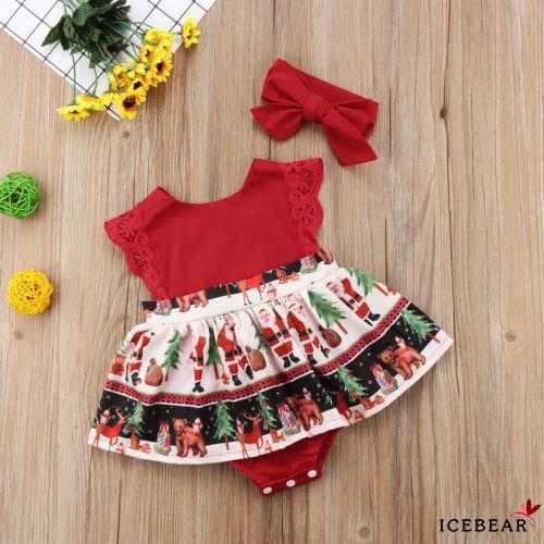 Newborn Infant Baby Girls Red Xmas Santa Romper Dress Christmas Lace Bodysuit Headband Outfit Clothes Footies Rompers Rompers